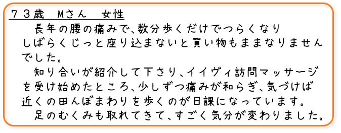 一宮市・江南市・扶桑町・大口町・岩倉市・稲沢市・北名古屋市の訪問マッサージ・はり・きゅう訪問治療院iivi (イイヴィ)